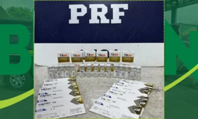 A Polícia Rodoviária Federal (PRF) realizou uma apreensão significativa de armas, munições e medicamentos proibidos durante uma fiscalização na **BR-116**, no trecho próximo a **Vitória da...